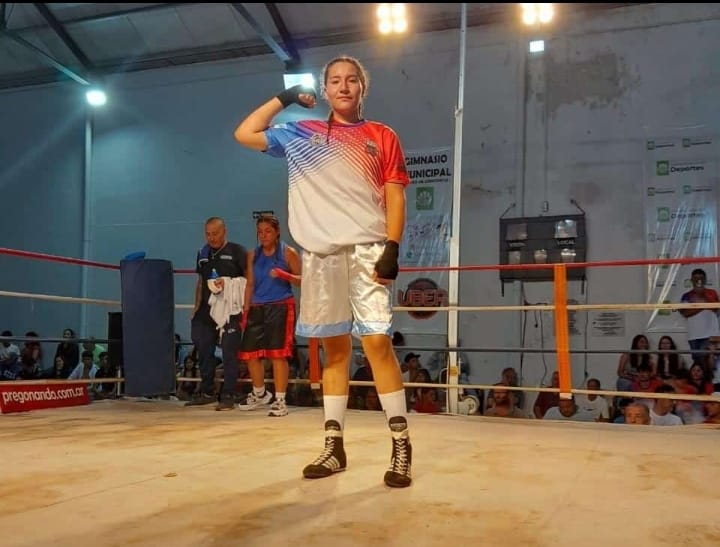 Milagros Peñalba compite en la categoría pluma (hasta 55 kilos) y es entrenada por José Luis Vega, en el Vega Box, que realiza sus entrenamiento en las instalaciones del Club Atlético Progreso Unidos.
