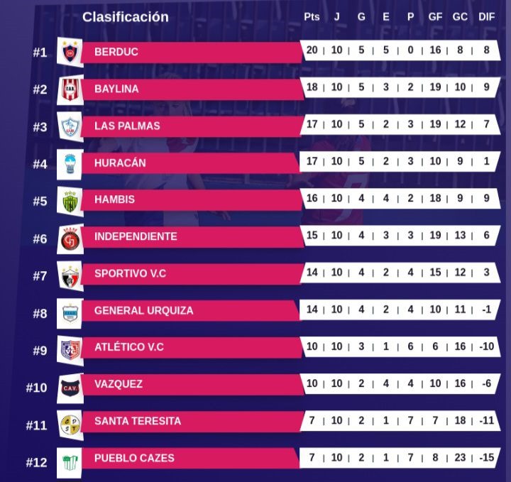 Cerrando la décima fecha del torneo, Deportivo Berduc y Atlético Baylina igualaron 2 a 2 en un verdadero partidazo, jugado por momentos bajo una intensa llovizna, que le agregó un marco épico al espectáculo. Baylina lo ganaba con dos tantos de Lucas Salinas, pero Berduc, con una gran muestra de carácter, lo igualó con goles de Milton Amarillo y Emiliano Casse para mantener el invicto y seguir siendo el único líder del campeonato.