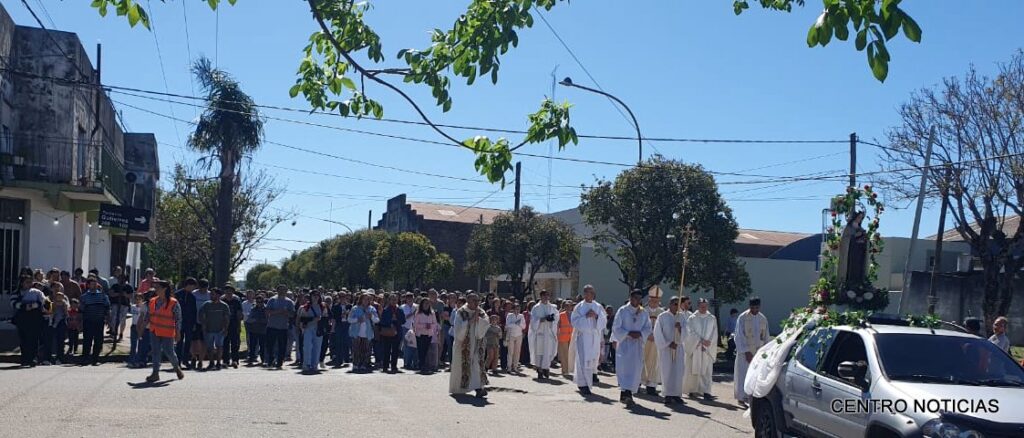 Luego a las 10hs se desarrolló la procesión que finalizó en el patio parroquial dando paso a la misa celebrada por el Obispo de la Diócesis de Concordia, Monseñor Gustavo Zurbriggen.