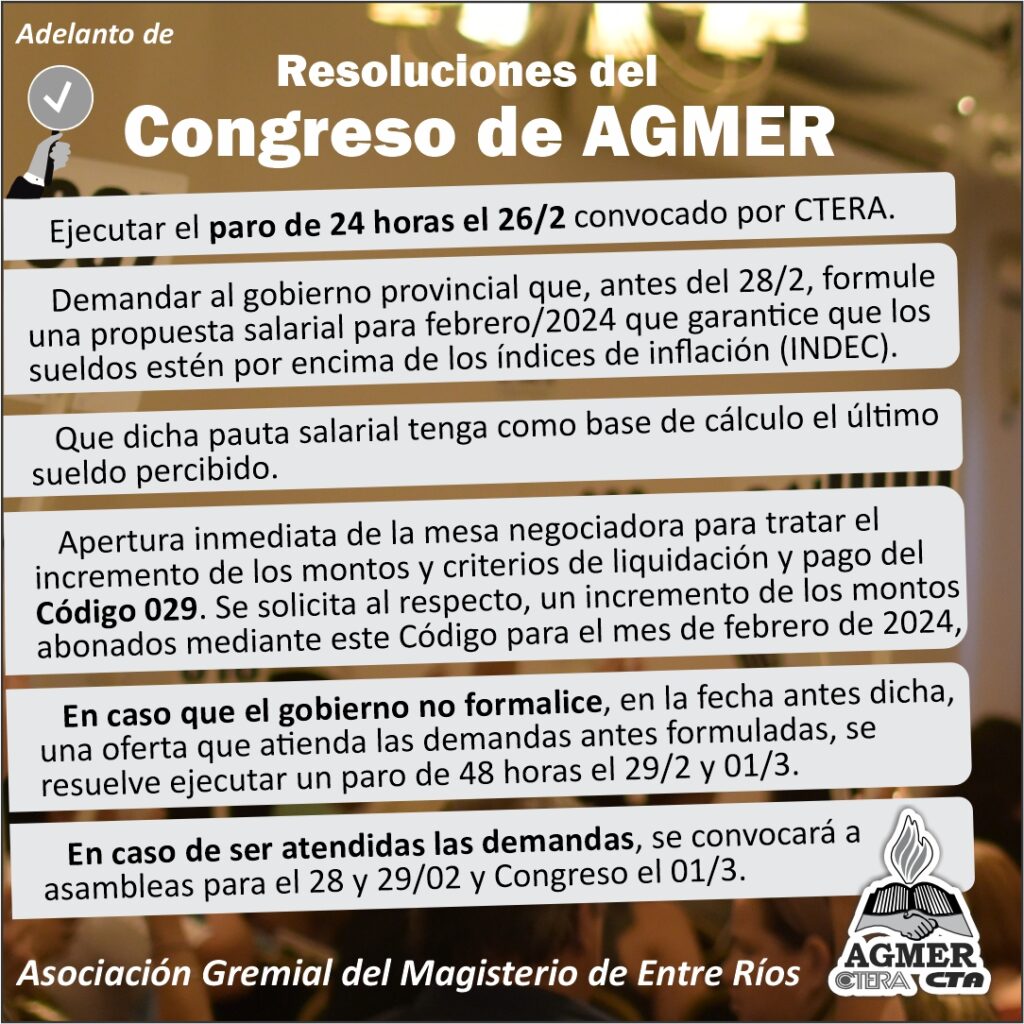 Paraná. AGMER compartió un adelanto de lo resuelto por el Congreso de nuestro sindicato que se reunió en Paraná desde la mañana de este jueves.