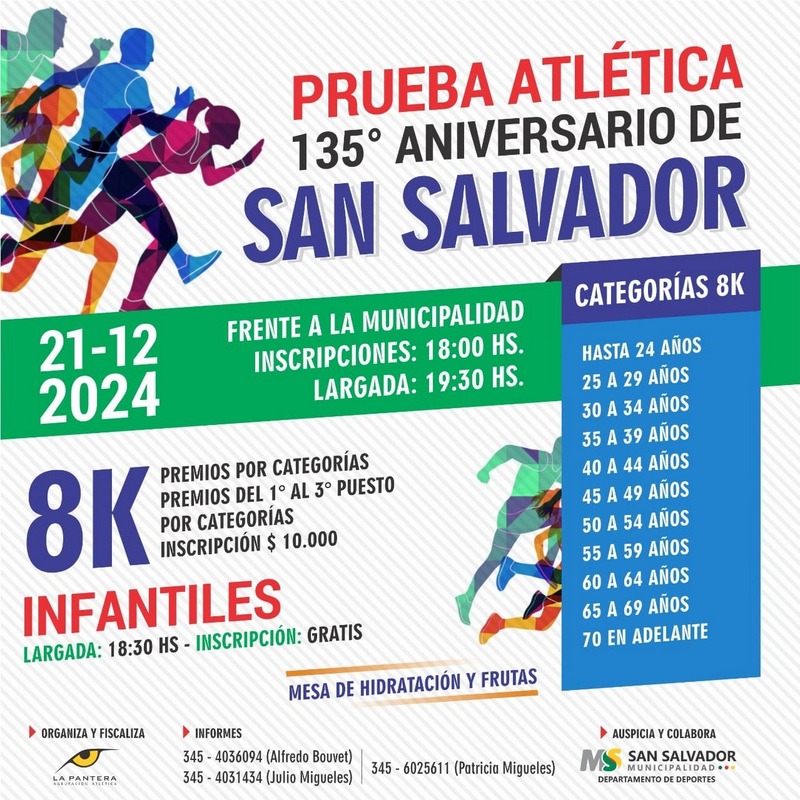 San Salvador. Este sábado 21 de diciembre se corre el Maratón 135° Aniversario de San Salvador, la tradicional prueba atlética en festejo de un año más de nuestra ciudad.
