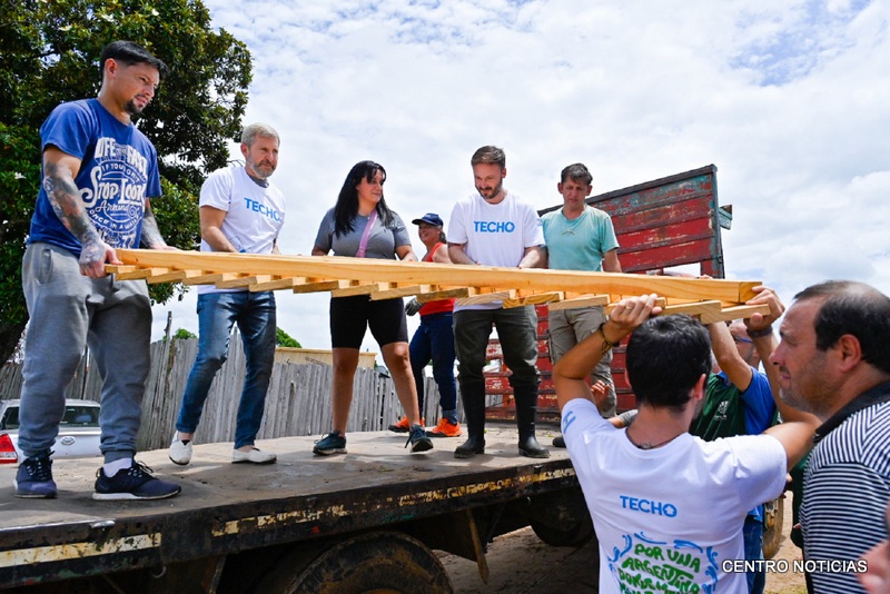 Paraná. Junto a los 500 voluntarios de la ONG TECHO, el gobernador Rogelio Frigerio se sumó a la construcción de viviendas de emergencia que se realizan en tres barrios de Concordia. "Acá todo el barrio y los voluntarios estamos trabajando para que las primeras 130 familias tengan una solución habitacional que les dé más dignidad", expresó.