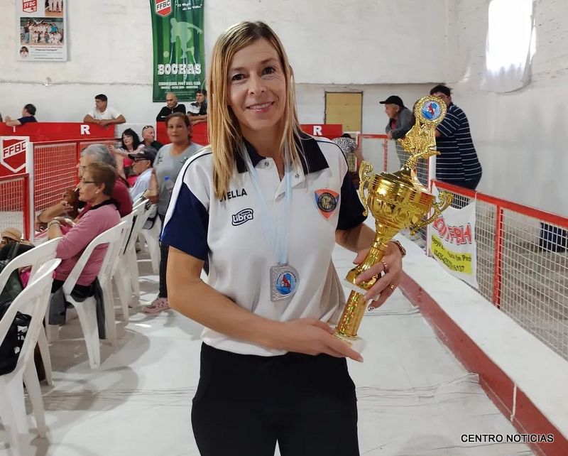 San Salvador. Se disputó en Nogoyá el Campeonato Entrerriano de Bochas de Damas en la modalidad individual y Parejas. La Asociación de San Salvador estuvo integrada por Luciana Guy, Josefina Mendieta (Pareja) y Stella Charles Mengeón (Individual). El DT fue Omar Joannás. Imagen: Stella Charles Mengeón con la Copa del Subcampeonato.