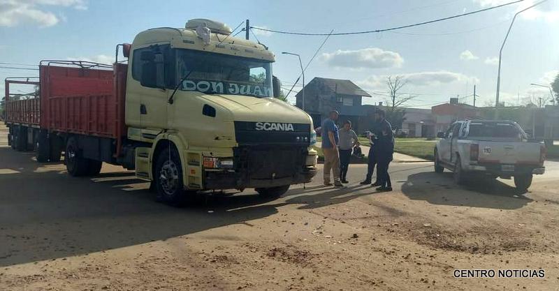 San Salvador. Este martes 6 de septiembre siendo aproximadamente las 16.25 hs. en calle Avenida Colón y Almirante Brown, por razones que se tratan de establecer, colisionaron un camión con acoplado, marca SCANIA MODELO T 124 GA, conducido por un hombre domiciliado en nuestra localidad y una camioneta CHEVROLET S10 conducida por un vecino de nuestra ciudad.