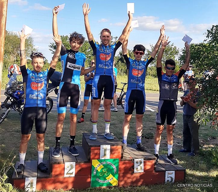 San Salvador. Se disputó en Gualeguay la primera fecha del Campeonato "Hugo Pato Daguerre". Con una buena presencia de ciclistas de distintos puntos del país. Felipe Sack, Andrés Maistegui, Carmela Rébori, Daniel Benítez y Héctor Mercancini fueron los ganadores. Allí participaron ciclistas de nuestra ciudad. Centro Noticias publica a continuación los resultados. Imagen: Lisandro Ortiz (5) en el podio de la categoría principal.