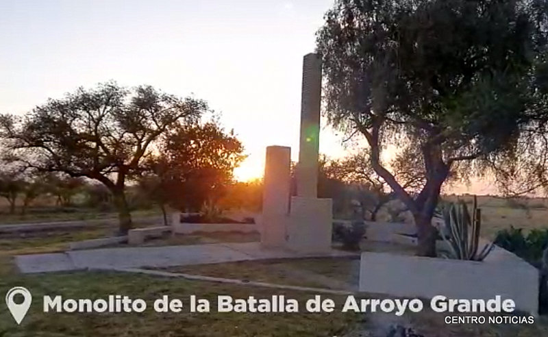 San Salvador. En el acto por el aniversario del fallecimiento del coronel Malarin, y un día después del aniversario de la batalla de Arroyo grande, Ramón De León entregó una placa que había sido robada del Monumento a los Caídos en la Batalla de Arroyo Grande, popularmente conocido como "el monolito".