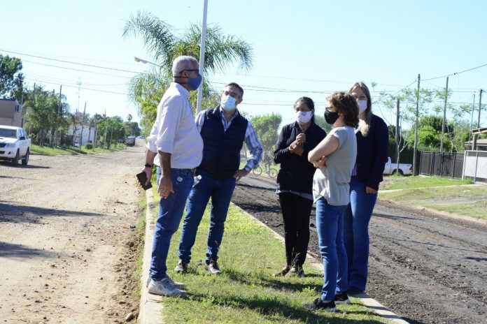 San Salvador. «Aún con las dificultades propias de estos tiempos, las obras y trabajos públicos no se detienen. Estamos cumpliendo con el pedido de distintos vecinos en distintos barrios de la ciudad» dijo el Intendente Larrarte al referirse al enripiado que se ejecuta en Av. Entre Ríos y a la extensión de servicios.