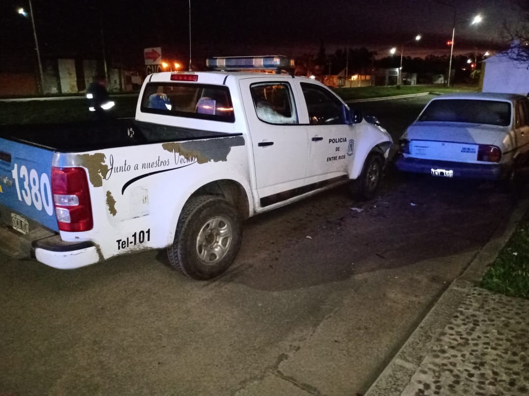San Salvador. En las primeras horas de la mañana un móvil patrullero identificado Interno 1380 perteneciente a esta Jefatura de Policía en momentos que efectuaba recorrida preventiva por calles de la ciudad específicamente por Boulevard Concordia al 300 por causas que se tratan de establecer colisiona un vehículo marca Peugeot 504 de color blanco el que estaba estacionado.