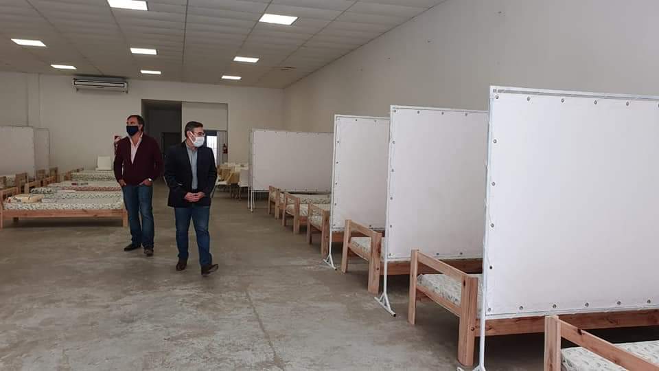 San Salvador. El Intendente y el Senador, recorrieron las instalaciones del Salón de AGMER donde se ejecutan tareas para su habilitación como centro alternativo de atención de posibles pacientes leves o moderados de de covid-19.