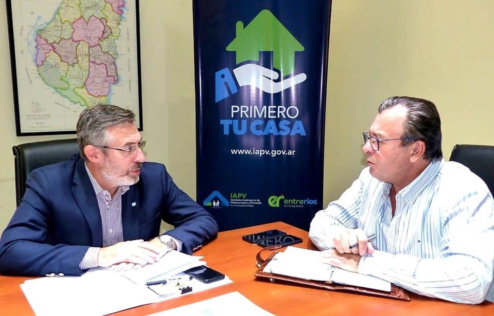 Paraná. El Intendente de San Salvador, Lucas Larrarte, fue recibido por el Presidente del IAPV, Marcelo Bisogni, con quien analizaron el avance de las obras en ejecución en San Salvador y con quien empezaron a dar los primeros pasos para la construcción de un nuevo conjunto de viviendas financiado por la provincia.