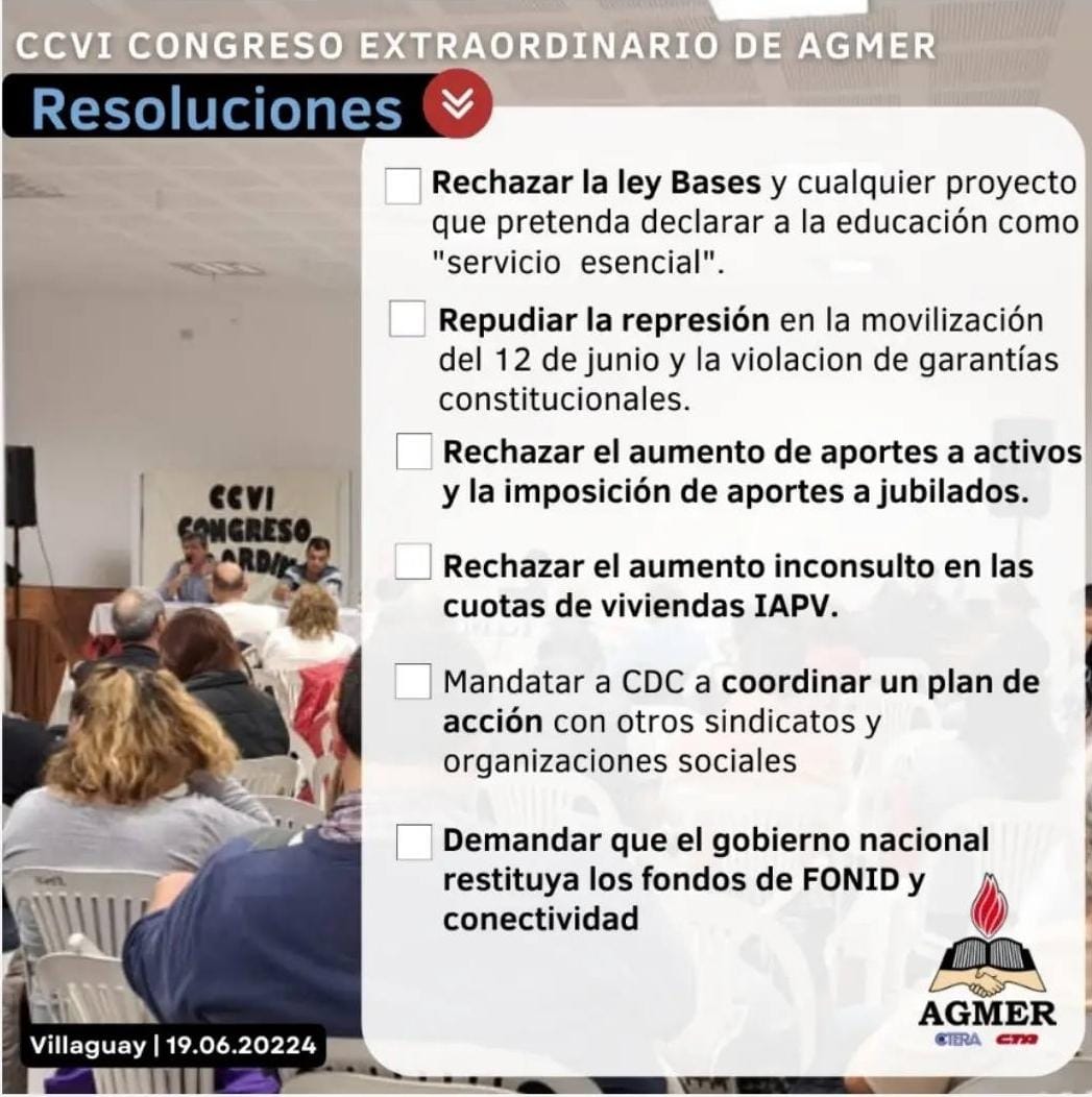 Paraná. Compartimos un adelanto de las Resoluciones del Congreso Extraordinario de AGMER.